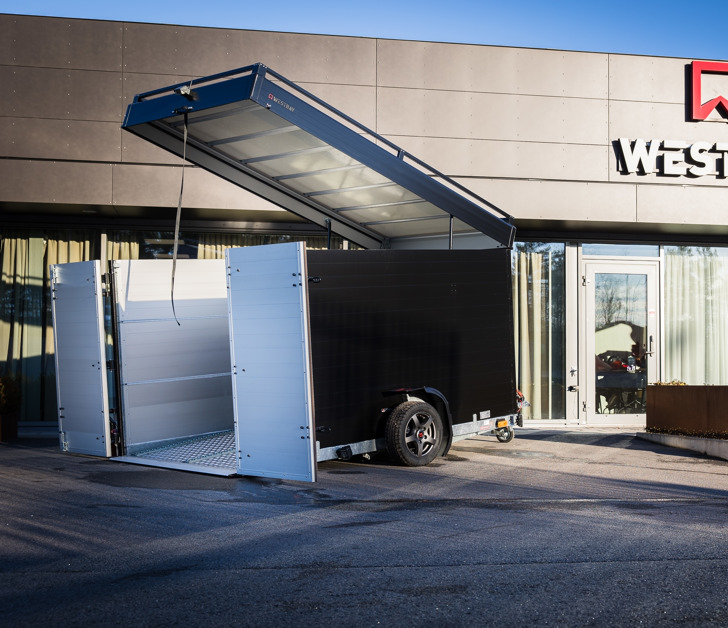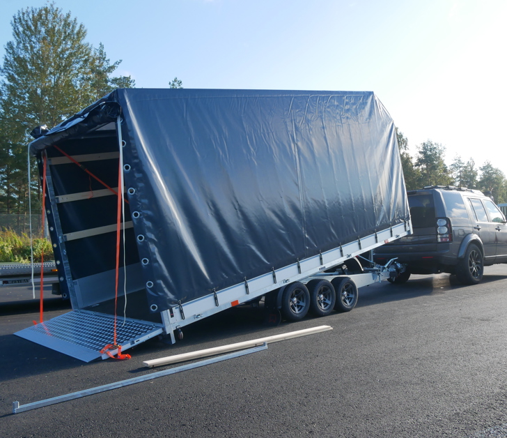 Adam multitransport med grått kapell och anpassad innerhöjd till 2100mm för plats för UTV.