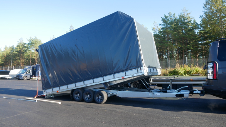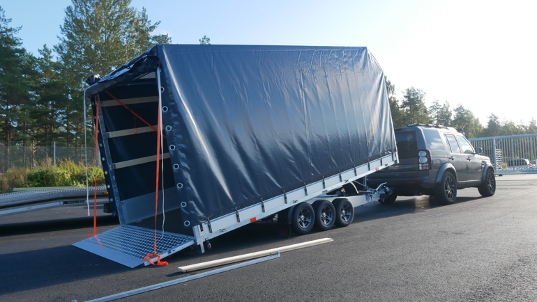 För att få med sig en UTV och ha plats för skrymmande gods, fick vi förtroendet att leverera en Adam multitransport i måttet 4500x2100mm med ett grått kapell.