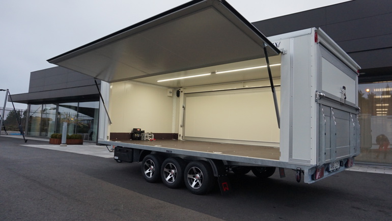 Övriga tillval som lättare invändig markströmsinstallation, innerbelysning i LED, verktygslådor samt elektrisk vinsch monterades efter ösnkemål från kund.