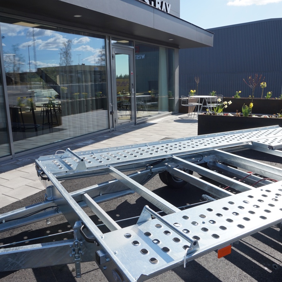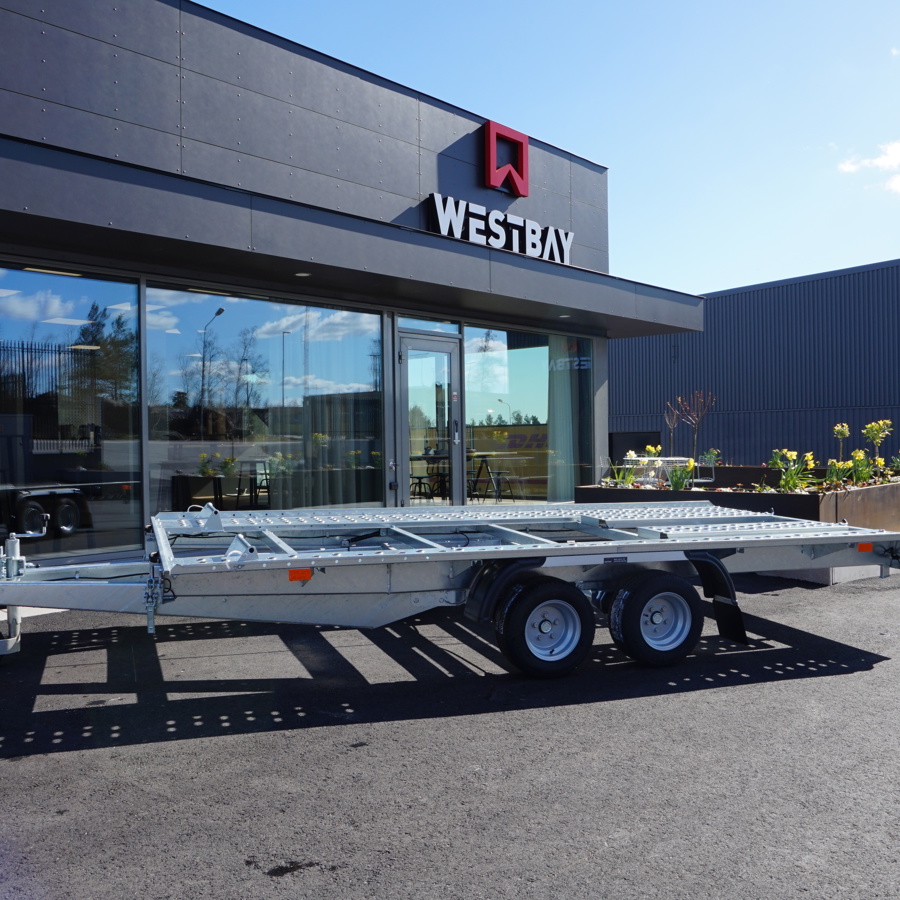 Alfa är ett kapabelt och prisvärt bilsläp. Eftersom den är högbyggd och har låga flakkanter så kan du bekvämt öppna dörren och kliva ur din lastade bil. Samtidigt har den en tacksam lasthöjd tack vare dess 10" hjul. Vagnen byggs som standard med två axlar och en totalvikt på 2700 kg och där den lastar hela 2250 kg.