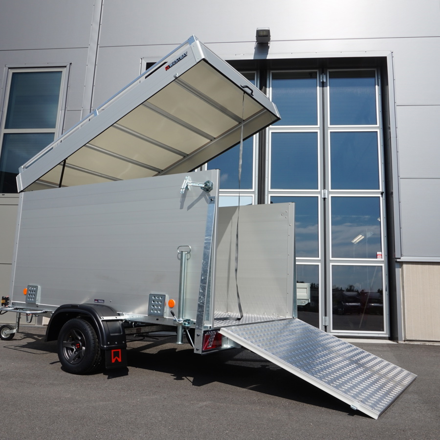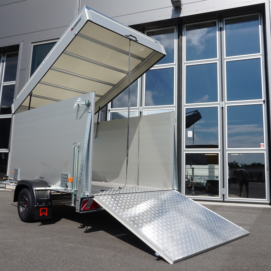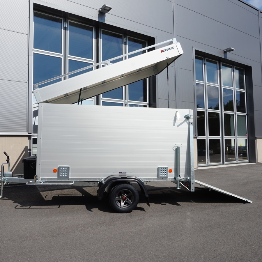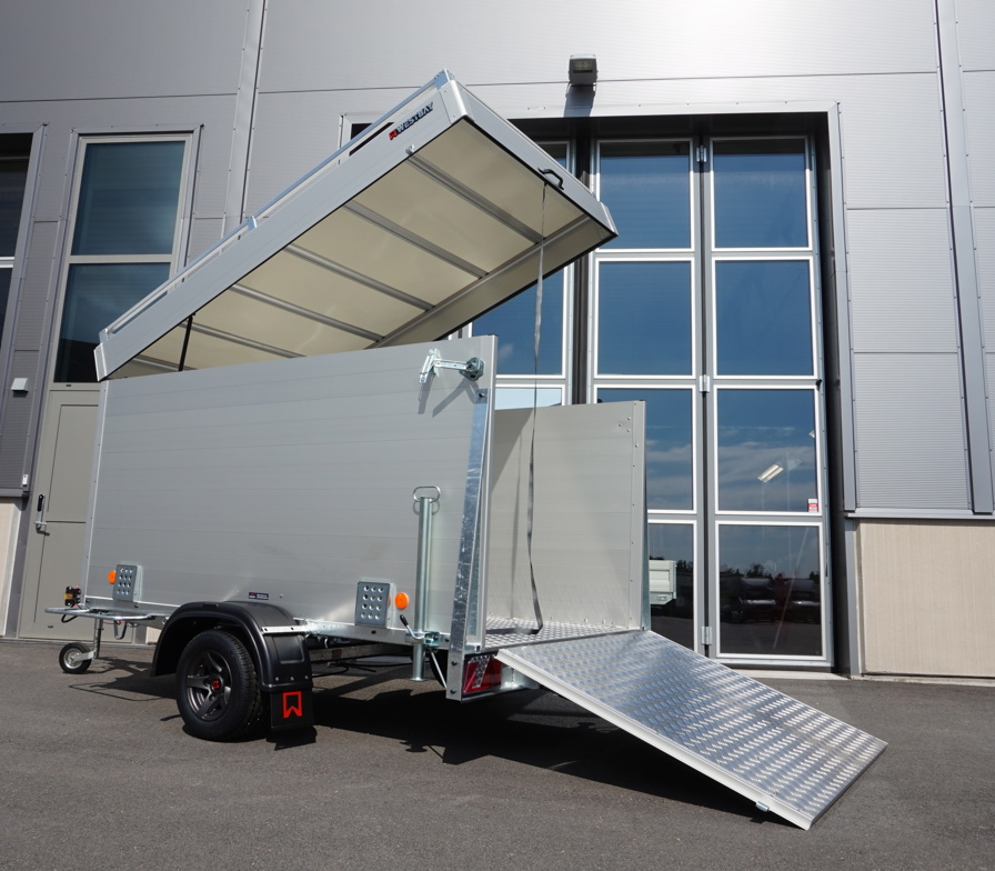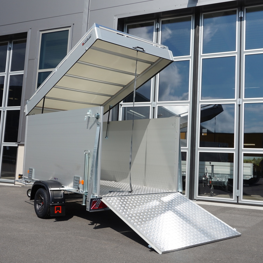Smidig kåpavagn med fällbar ramp eller dörrar.