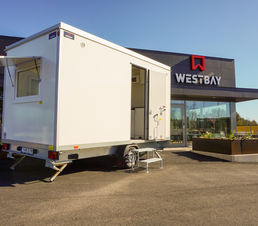 Rastutrymme med minikök. Med eller utan toalett och förråd. Klassade för 80 km/h och flyttas enkelt mellan arbetsplatserna.