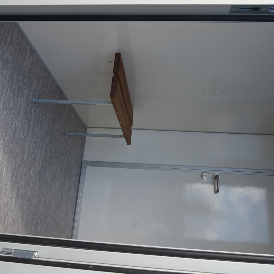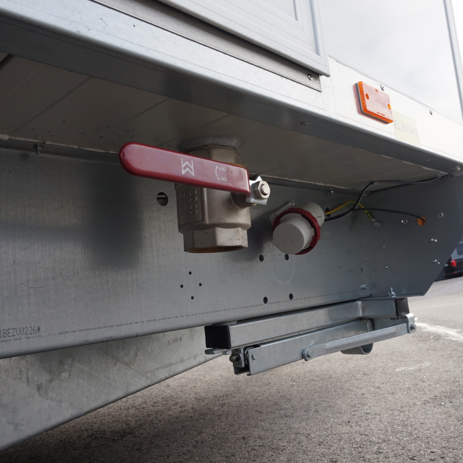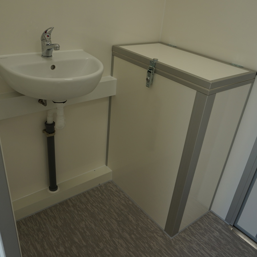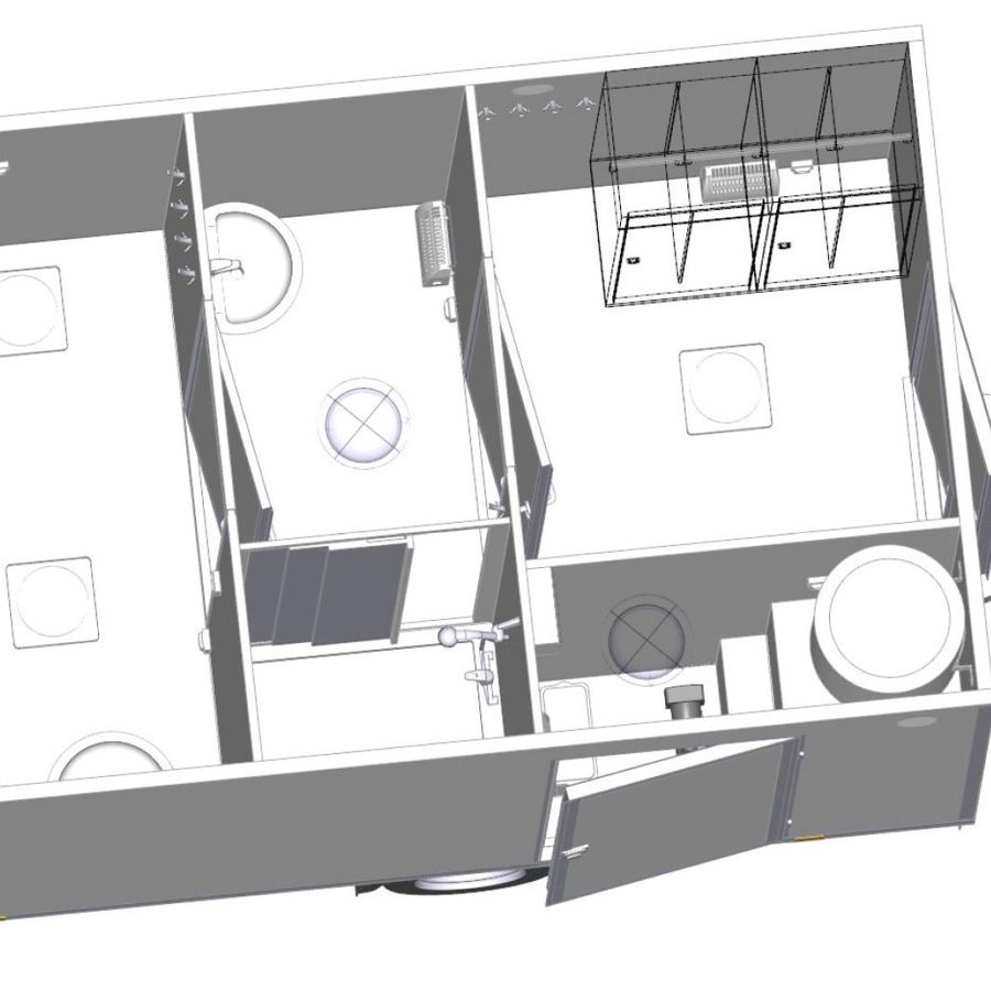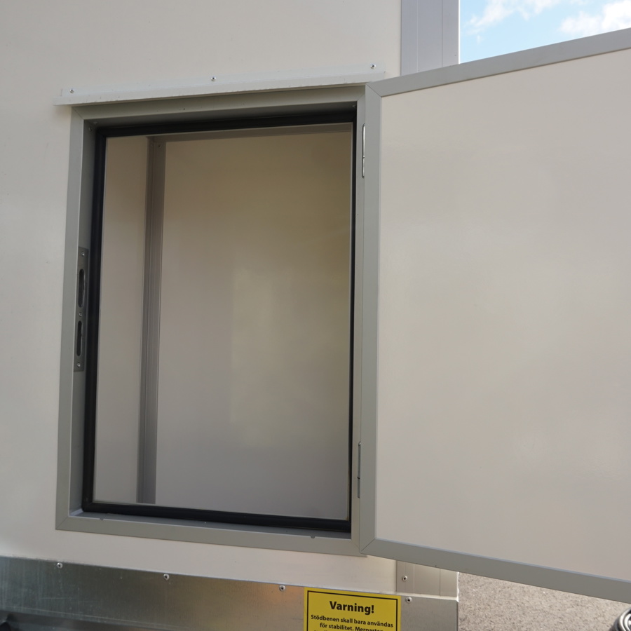 Trestegssluss med dusch och omklädning. Får köras i 80 km/h och flyttas enkelt mellan arbetsplatser.