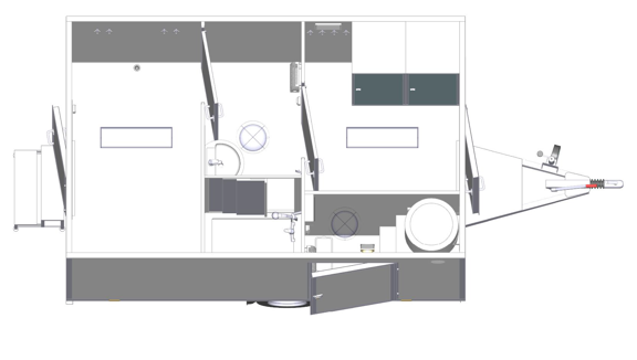 Trestegssluss. För 2 personer med ren och smutsig del. Både för tankdrift eller fast inkoppling.