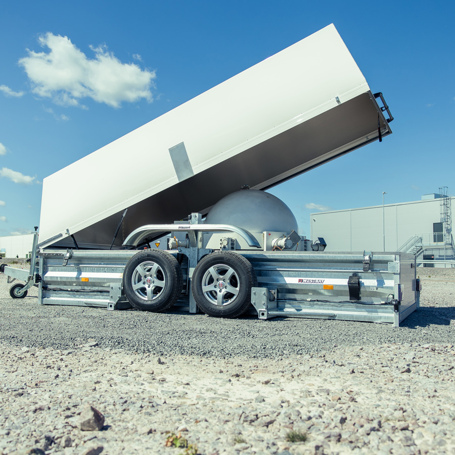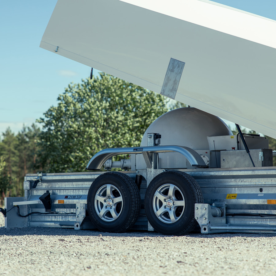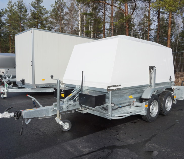 Easyloader heavy duty är ett bra val för att flytta små men tunga maskiner som Saxliftar eller större skurmaskiner. Denna vagn utrustades även med vitlackerad kåpa för torra transporter på vinterhalvåret!