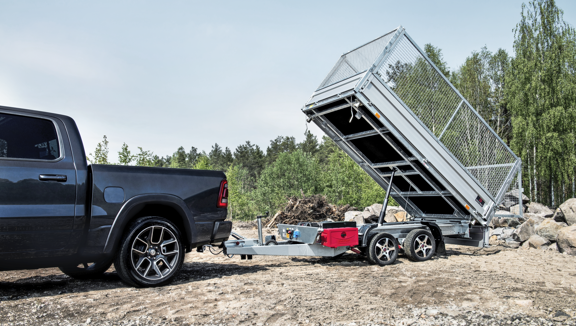 Tippsläp med brant tippfunktion. För dig som kör ved eller schaktmassor.